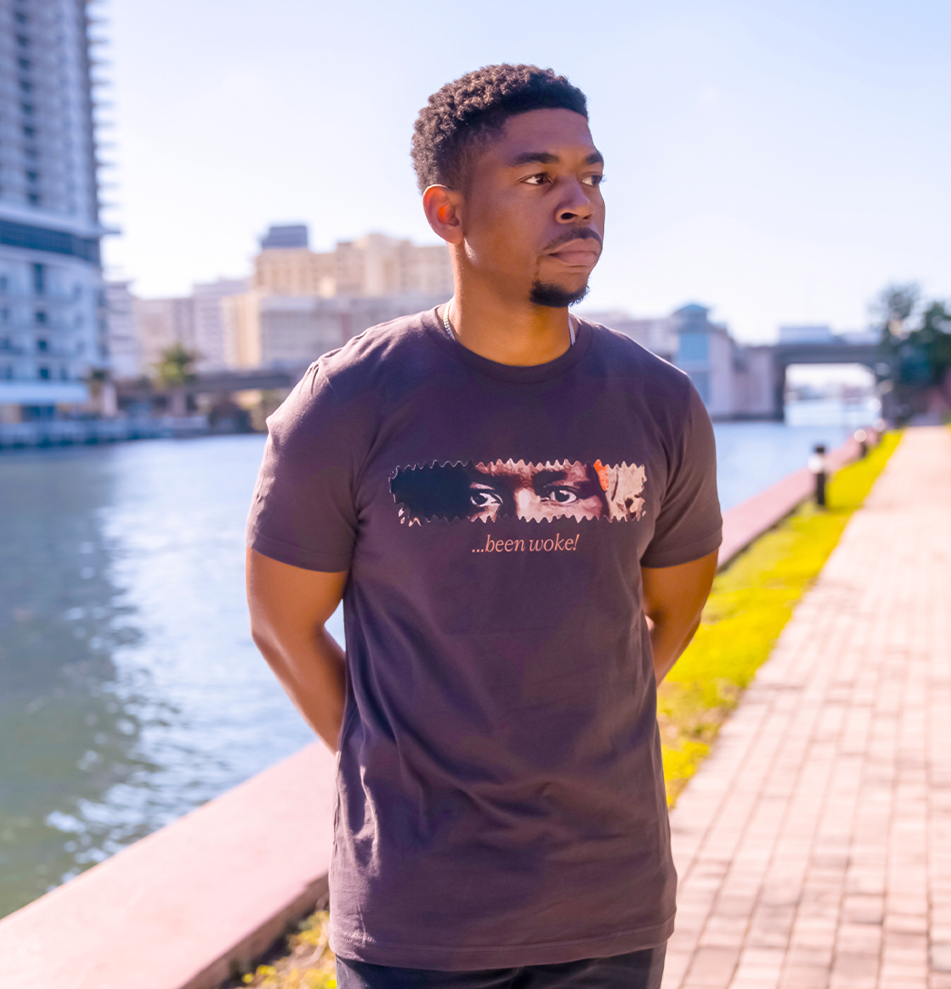 The Diaspórica “Been Woke” Tee honors the truth that awareness is ancestral. The front features the phrase “…been woke” beneath a watchful gaze inspired by Maria Felipa de Oliveira, an Afro-Brazilian freedom fighter whose role in Brazil’s independence struggle represents collective resistance and shared liberation.